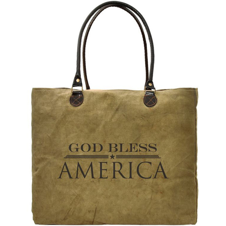 God Bless America Recycled Military Tent Market Tote